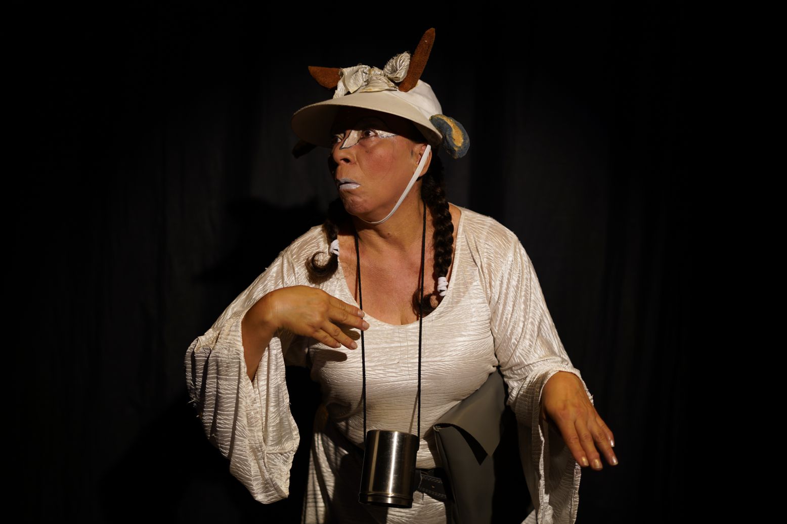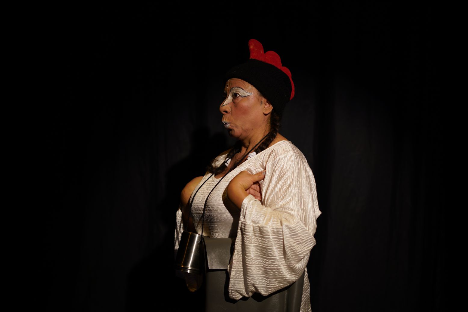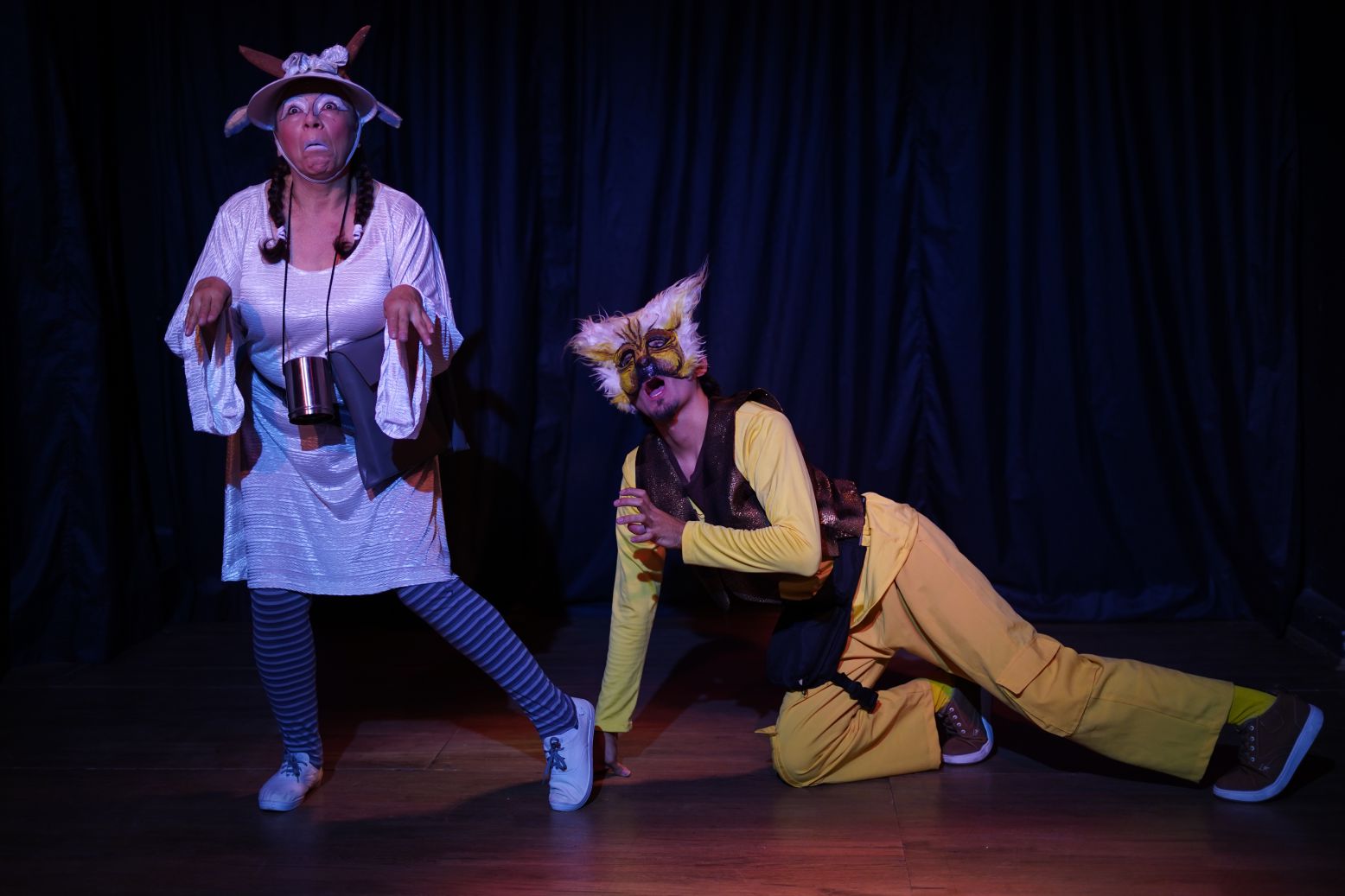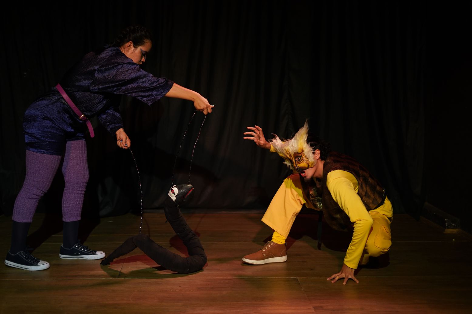 La puesta en escena es una invitación al juego y a la imaginación a través de los tres juglares que narrarán la historia de amor entre el gato y la golondrina.